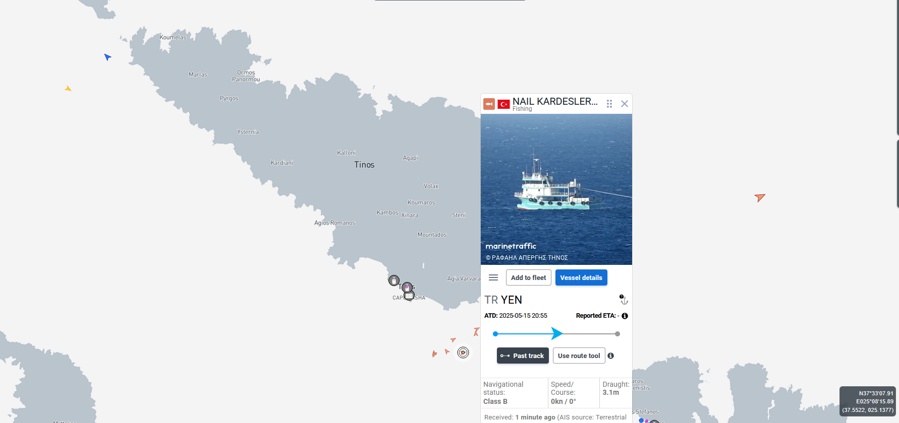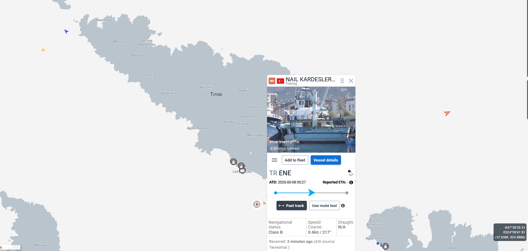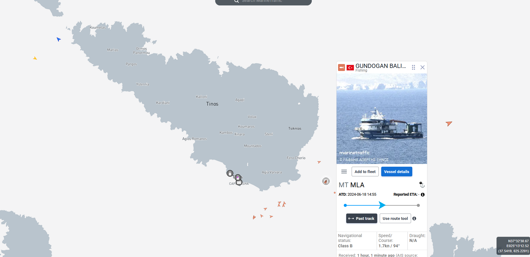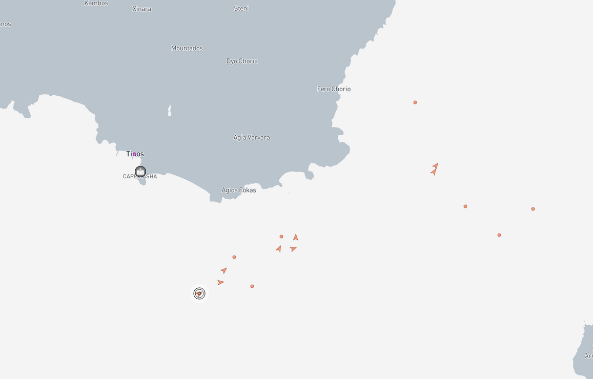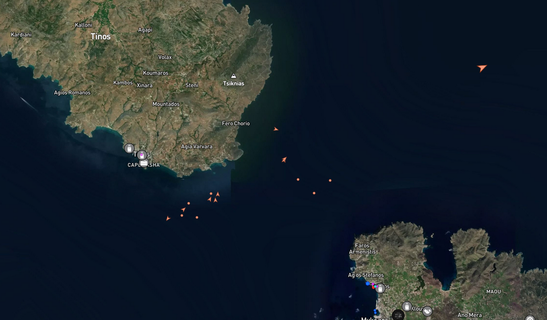 Ακολουθούν εικόνες από το MarineTraffic και την καταγραφή της θέσης των σκαφών, ώστε να υπάρχει πλήρης εικόνα για το θέμα.