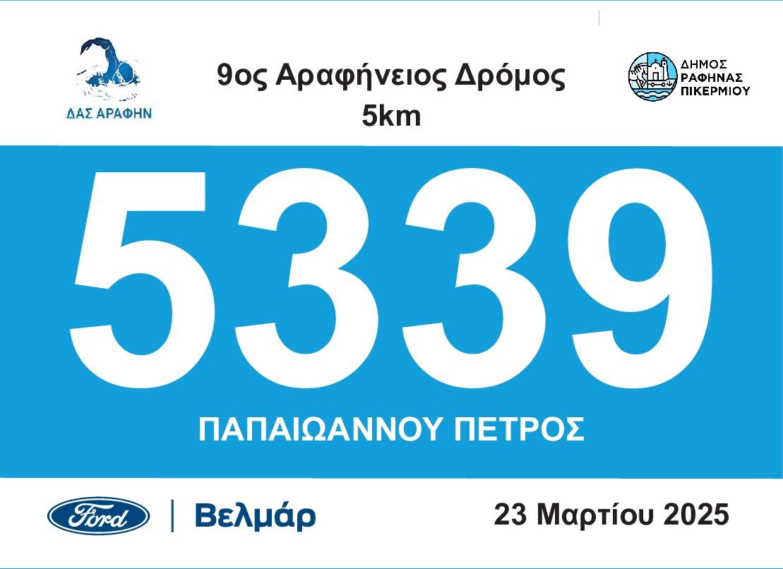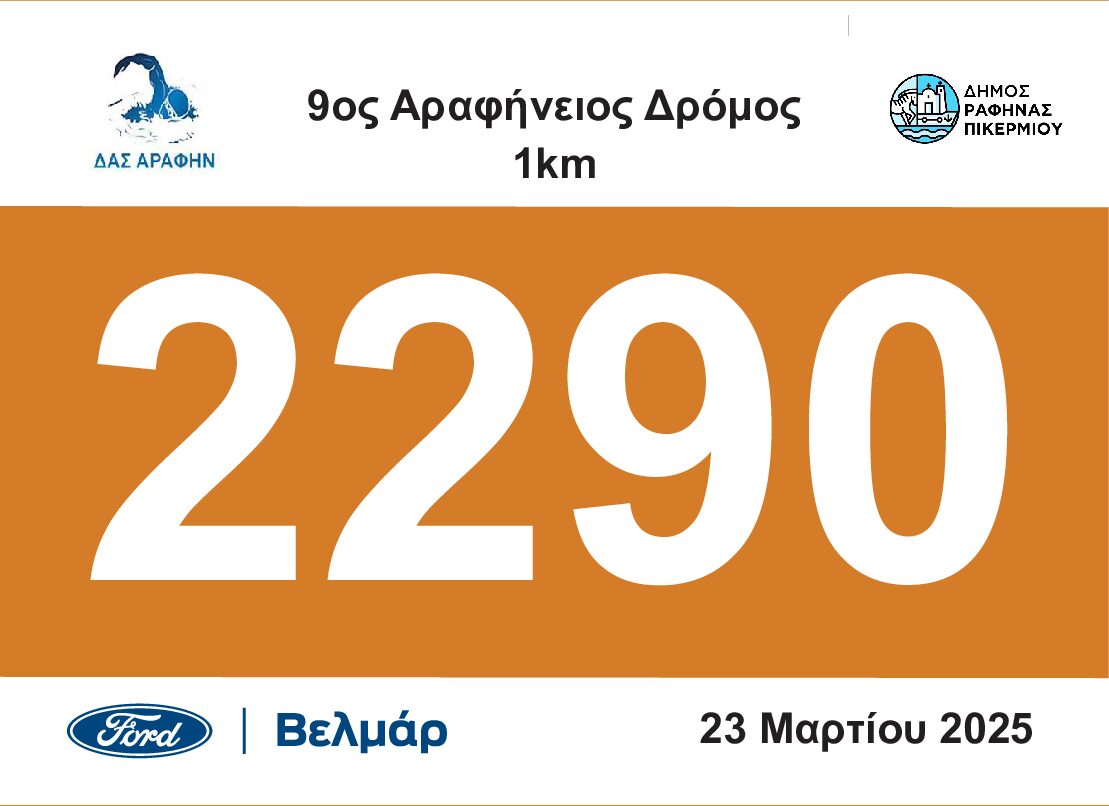 Διακρίνεται ο διοργανωτής ΔΑΣ ΑΡΑΦΗΝ, ο Δήμος Ραφήνας Πικερμίου φυσικά, ο χορηγός, το όνομα και η ημερομηνία. Ένα πολύ προσεγμένο γραφιστικά σχέδιο που θα περιλαμβάνει και το τσιπάκι χρονομέτρησης!