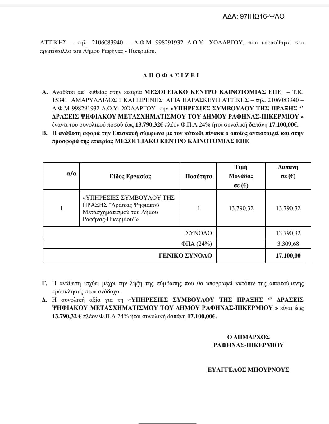 “ΔΕΥΤΕΡΟ ΧΡΗΜΑΤΟΔΟΤΙΚΟ ΒΑΤΕΡΛΩ ΓΙΑ ΤΟ ΔΗΜΟ ΡΑΦΗΝΑΣ ΠΙΚΕΡΜΙΟΥ.