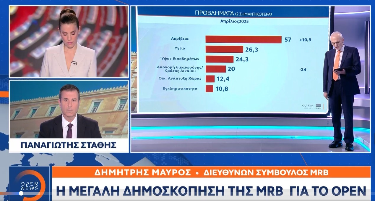 Το αυξανόμενο κόστος ζωής, η ενεργειακή κρίση και η ακρίβεια σε βασικά αγαθά έχουν καταλάβει την πρώτη θέση στις ανησυχίες των πολιτών, ξεπερνώντας ακόμη και τη λειτουργία της Δικαιοσύνης ή τη δημόσια υγεία. Ωστόσο, το γεγονός ότι οι πολίτες συνεχίζουν να δείχνουν βαθιά δυσπιστία απέναντι στους θεσμούς αποκαλύπτει μια συνολικότερη κρίση εμπιστοσύνης προς το πολιτικό σύστημα.