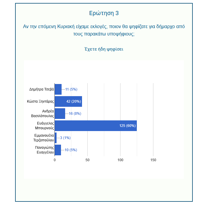 Στην ερώτηση «Αν την επόμενη Κυριακή είχαμε εκλογές, ποιον θα ψηφίζατε για δήμαρχο;», οι πολίτες έδωσαν σαφή απάντηση: