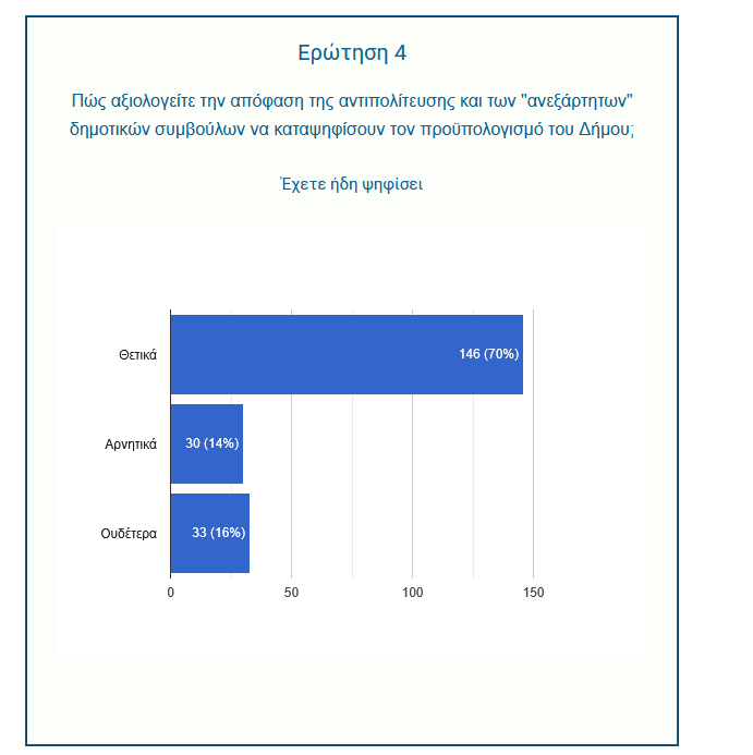Η απόφαση της αντιπολίτευσης και των ανεξάρτητων δημοτικών συμβούλων να καταψηφίσουν τον προϋπολογισμό φαίνεται πως είχε τη στήριξη της κοινής γνώμης:
