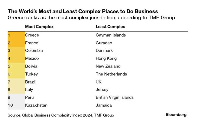 Η Ελλάδα πάντως εξακολουθεί να είναι πρωταθλήτρια στη γραφειοκρατία, γεγονός που την τοποθετεί πρώτη στη λίστα με τις πιο δύσκολες χώρες για επενδύσεις.