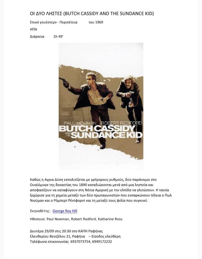 Η Κινηματογραφική Λέσχη Ραφήνας Πικερμίου τιμά τον Ρόμπερτ Ρέντφορντ – polismedia