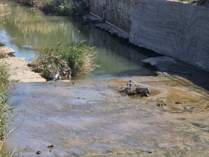 Στο κέντρο του κάδρου, ένας λευκός ερωδιός στέκεται ακίνητος δίπλα στο νερό. Ίσως ψάχνει τροφή, ίσως ξεκουράζεται, ίσως απλώς συνεχίζει τη ζωή του όπως του την άφησαν. Λίγα μέτρα πιο δίπλα, ένα σκουριασμένο καρότσι σούπερ μάρκετ – σύμβολο της κατανάλωσης, της εγκατάλειψης και, τελικά, της ρύπανσης – έχει βρει “μόνιμη θέση” μέσα στο ρέμα.