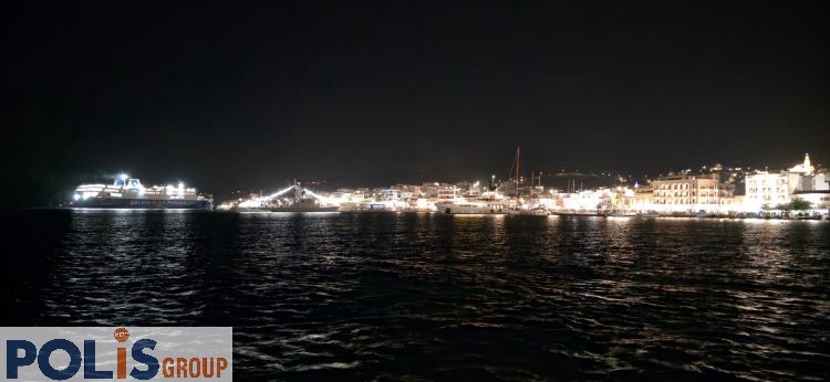 Το λιμάνι είναι γεμάτο από επιβατικά πλοία που φτάνουν κυρίως από τη Ραφήνα, ενώ η παρουσία πολεμικών πλοίων προσθέτει έναν ιδιαίτερο τόνο στη σημερινή εικόνα, ενόψει της αυριανής μεγάλης εορτής.